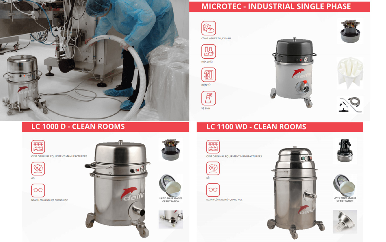 Máy hút bụi công nghiệp delfin dùng cho phòng sạch do Pacific-vietnam phân phối tại thị trường Việt Nam